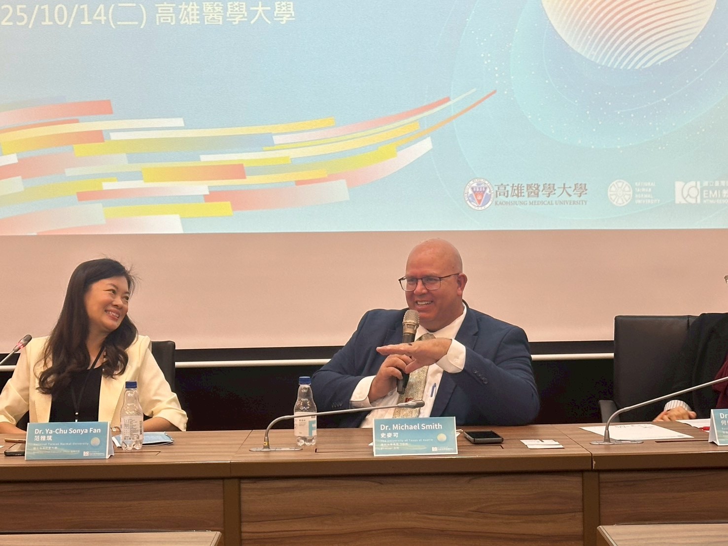 南區活動於正修科技大學與高雄醫學大學個別舉行兩場,聚焦EMI課程設計與學生語言支持實務。Dr. Smith與范雅筑副執行長帶領討論,與王寶惜、何佩珊、鄭雍怡及趙偉勛(吳鳳科技大學長期照護與管理系教授)等南區教師,共同探討AI工具在專業英語教學中的應用可能,並分享教學助理(TA)制度在課堂支持與課程轉化中的關鍵作用。與會教師指出,跨校合作可促進資源共享與共同備課,形成可持續的專業學習社群。
