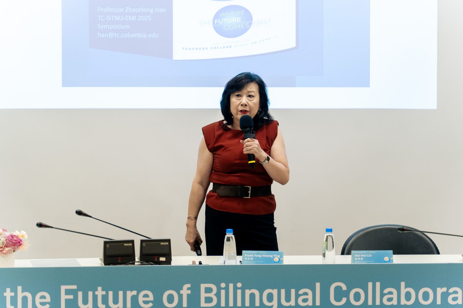 第二場講座由Dr. Han以〈21世紀的EMI指南〉(EMI in the 21st Century: A Playbook)為題,分享其多年外語教學與EMI培訓經驗,歸納EMI課程設計與教學實踐的十項核心原則。她強調,有效的EMI教學應兼顧學科內容與語言發展,教師需從學生需求出發,結合理論、策略與反思,建立可持續、可進化的學習。Dr. Han的演講引起現場熱烈回響,啟發與會教師從技術層面思考EMI的執行方向。