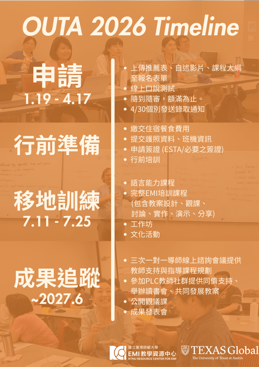 - 自由時報-台師大攜手德州大學奧斯汀分校 強化全英語授課教師的教學力